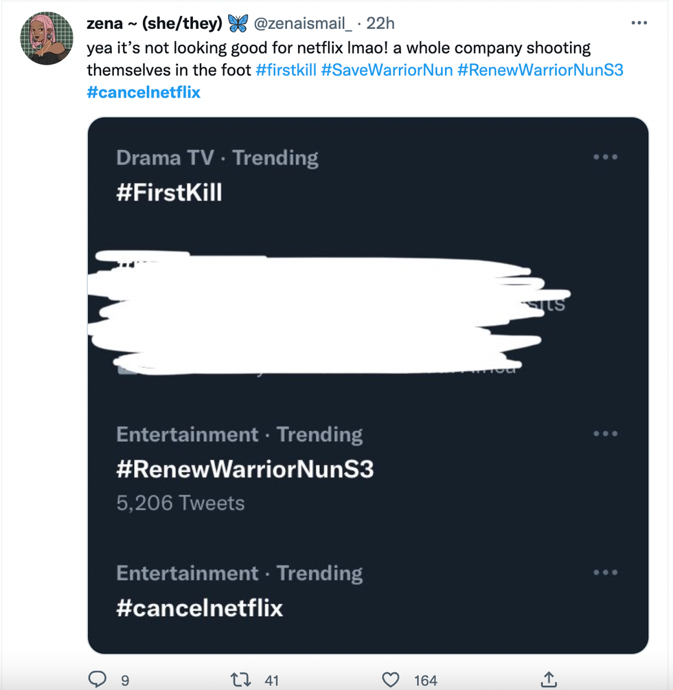 By Wednesday afternoon, #CancelNetflix was trending on Twitter due to the number of fans calling for Warrior Nun to be renewed.