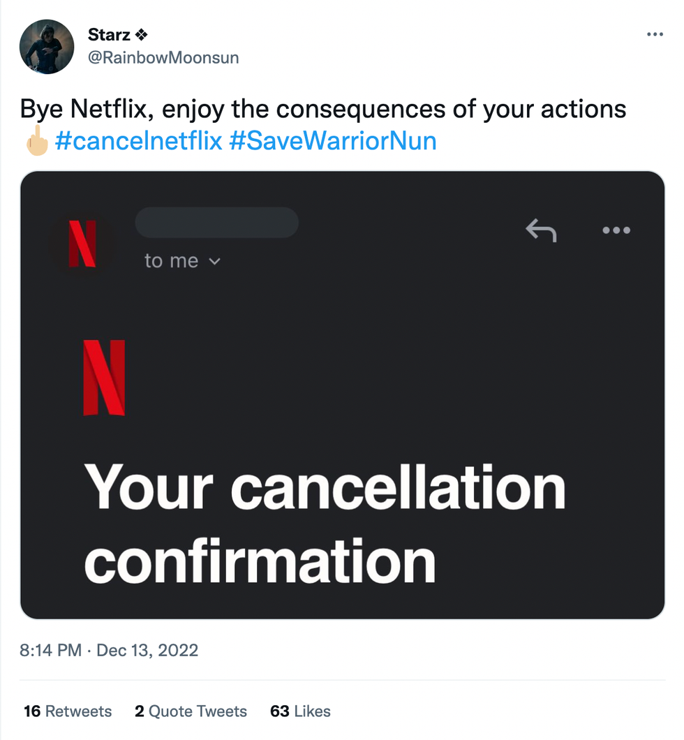 Now Warrior Nun fans are calling for the streaming platform to bring back the show, or face cancelled subscriptions.