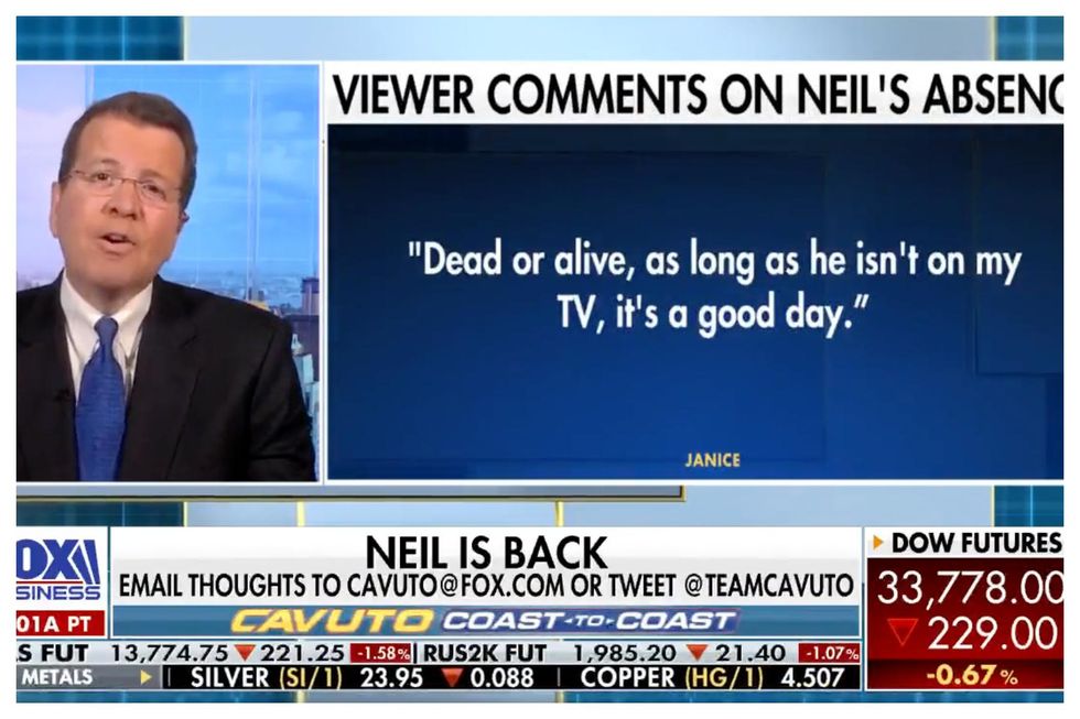 Fox News anchor Neil Cavuto returned to his show Your World this week following a five-week-long unexplained hiatus and decided to kick off his program by reading some hate mail