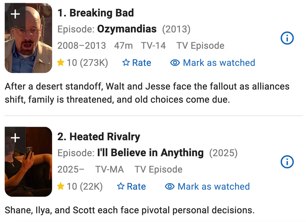 The latest episode (five) titled "I’ll Believe in Anything", which was released by Crave and HBO Max on December 18, and on December 22 it became the highest-rated television episode of the year, earning a perfect 10/10 rating on IMDb.