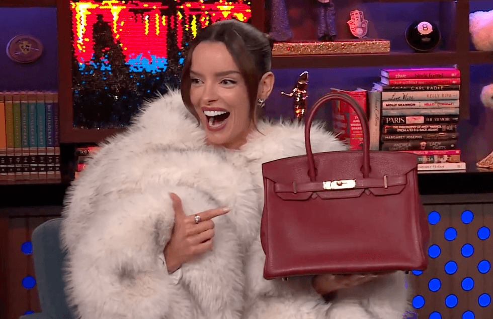 The bag in question is a Rouge H Birkin 25 Gold Hardware - or simply put - it's a wine red with gold accents on the clasps, and Maura was presented with it on Watch What Happens Live with Andy Cohen.