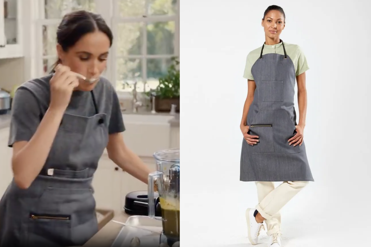 One of many aprons Meghan is seen wearing in the show is a collaboration between Finery and Korean-American chef, Roy Choi, who stars in the episode alongside her. This was likely gifted given that they're pals, but if you want the same one it'll set you back $85.