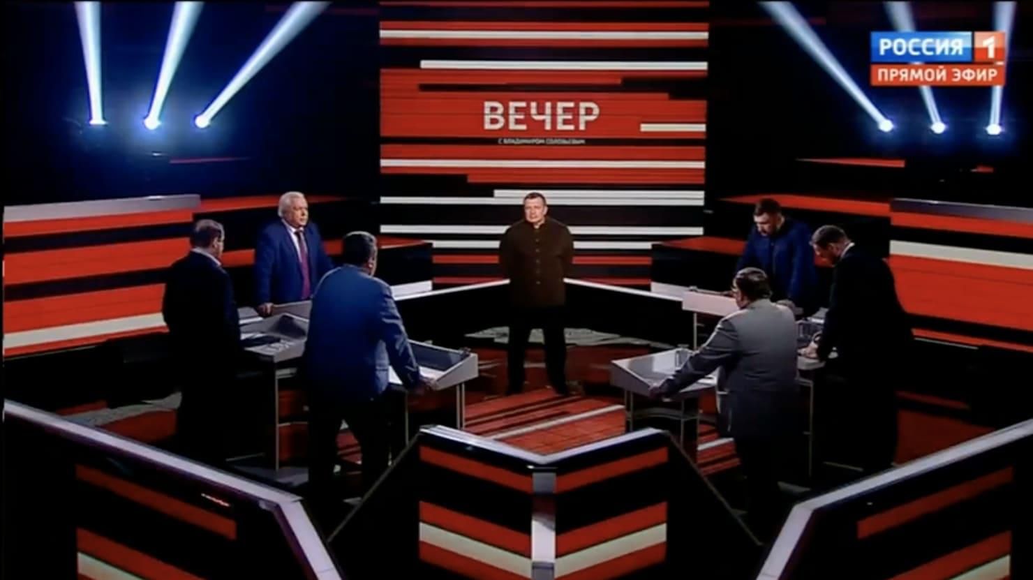 But last Tuesday's episode of Solovyov's show apparently had a bit of a hiccup, according to Julia Davis' reporting for The Daily Beast.