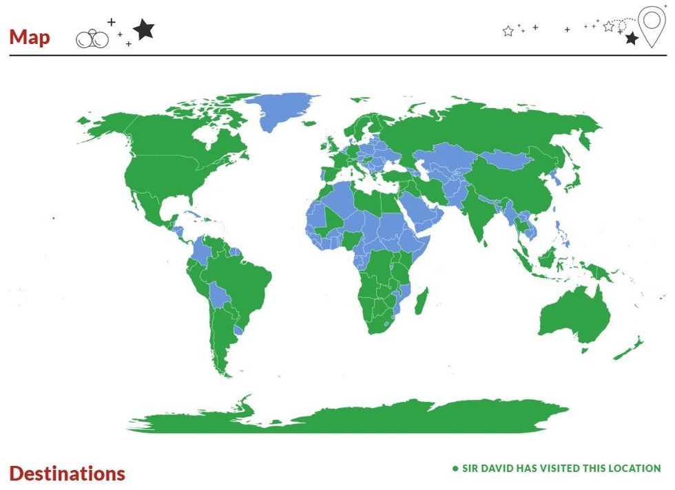 If you scroll down you can click to see Attenborough's map all filled in with the places he's been to and you can see how you compare by clicking "See my score."