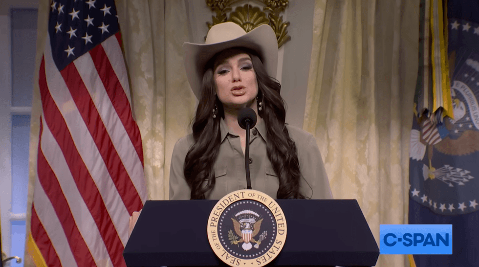 Ashley Padilla played Secretary of Homeland Security Kristi Noem, where she spoke about the rising tensions and protests in Minneapolis following the fatal shooting of Renee Nicole Good by an Immigration and Customs Enforcement agent.