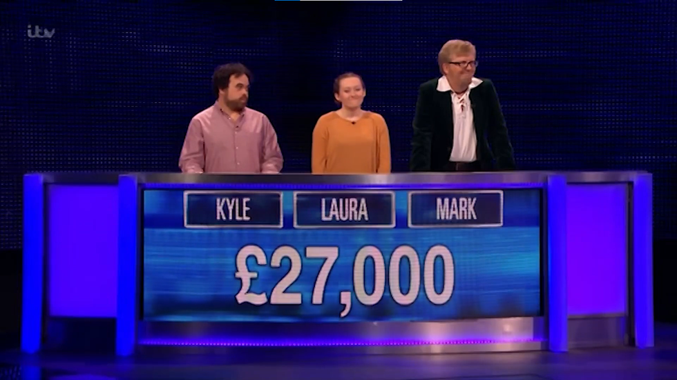 After they managed to get through the cash builder and head-to-head rounds, contestants Kyle, 31, Laura, 23, Mark, 50, were up against the 'Dark Destroyer' in the final chase - their teammate Eileen, 64, got caught and didn't make it to the last round.