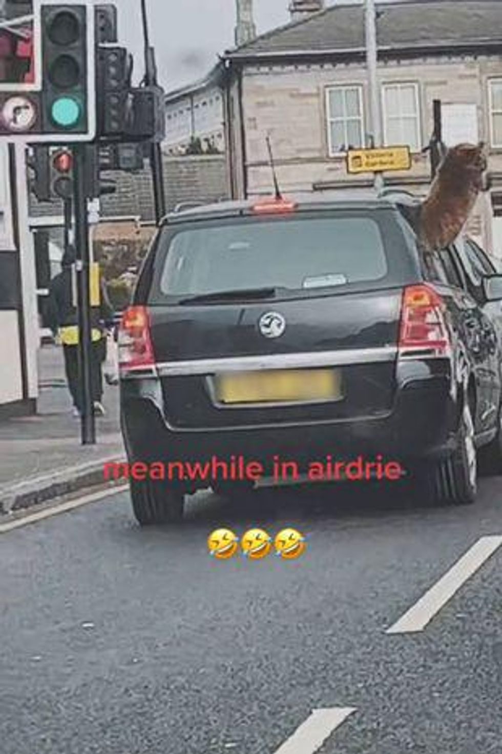 The furry creature appeared inquisitive as to what the problem was when the black estate car it was travelling in was stopped on the A84, Craigforth, Stirling, on Monday (June 6).