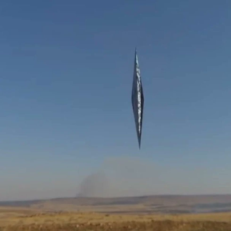 A mysterious arrow-shaped UFO has been spotted rotating in the air.