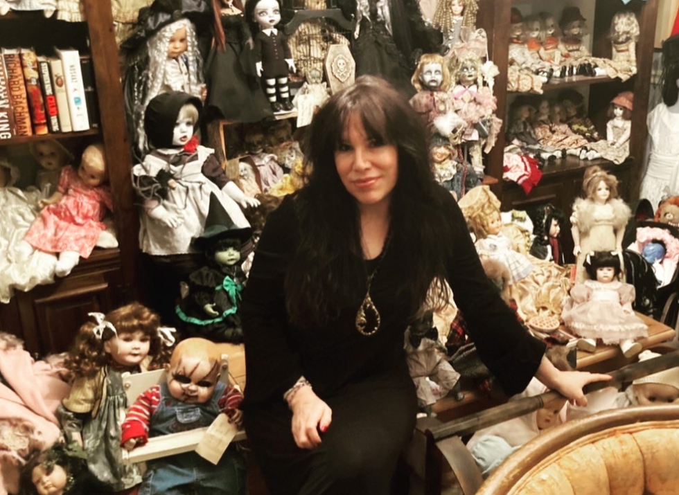 A Gothic artist has dedicated an entire room in her house into a "shrine" for her "creepy doll" collection, as she believes it “makes life so much more interesting and fun”.