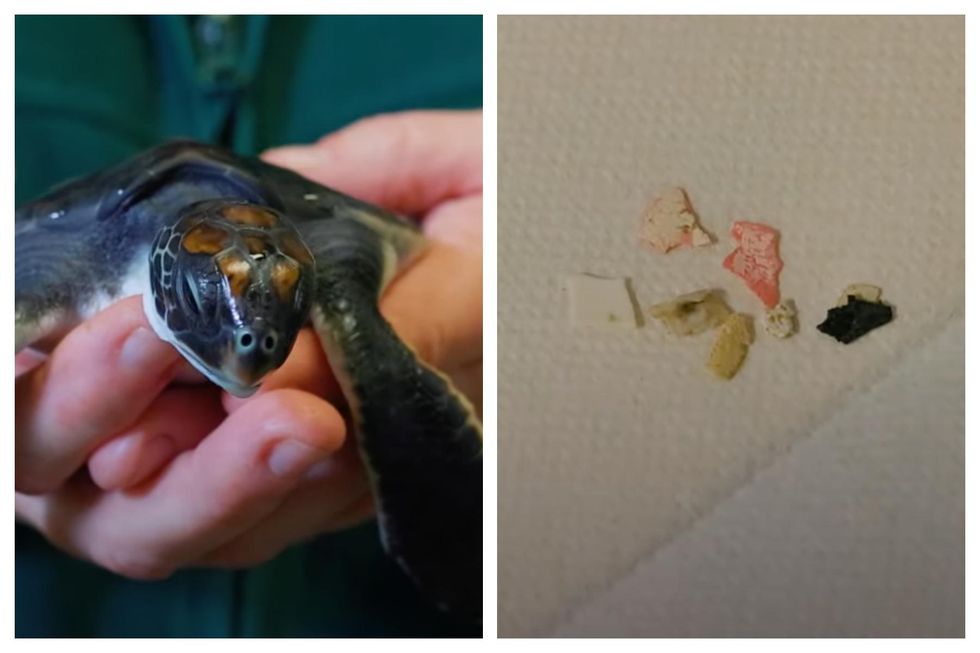 A green baby turtle in Australia was found to have overeaten plastic to the point that it pooped it out for six consecutive days.