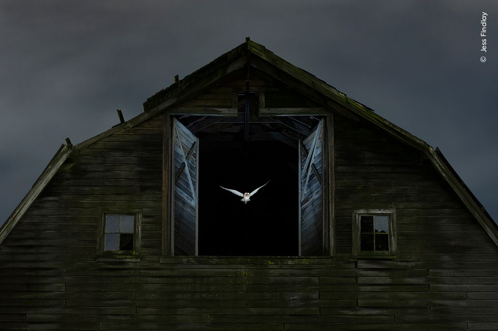 Four other highly commended images also impressed wildlife lovers, including Francisco Negroni’s photo of a double lenticular cloud over the Villarrica volcano in Chile, and Jess Findlay’s action shot of a ghostly barn owl exiting through the hayloft window of a derelict barn.