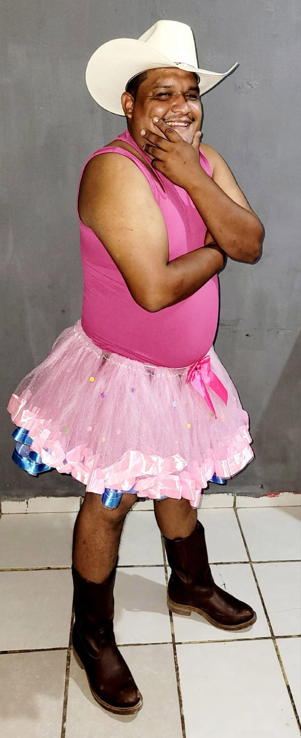 In the images, Rodríguez is seen sporting a pink leotard and white tutu along with a broad grin.