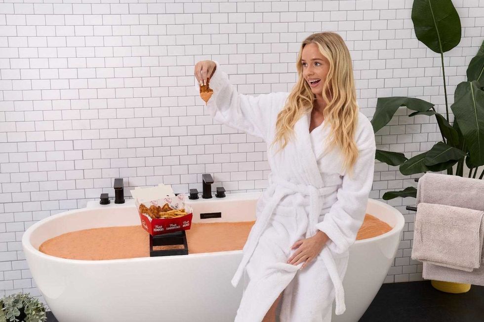 Slim Chickens has teamed up with Victorian Plumbing for what might be the most unhinged collab of the day. The concept: a bath with a built-in sauce tap that dispenses their signature Slims Sauce straight into the tub.
