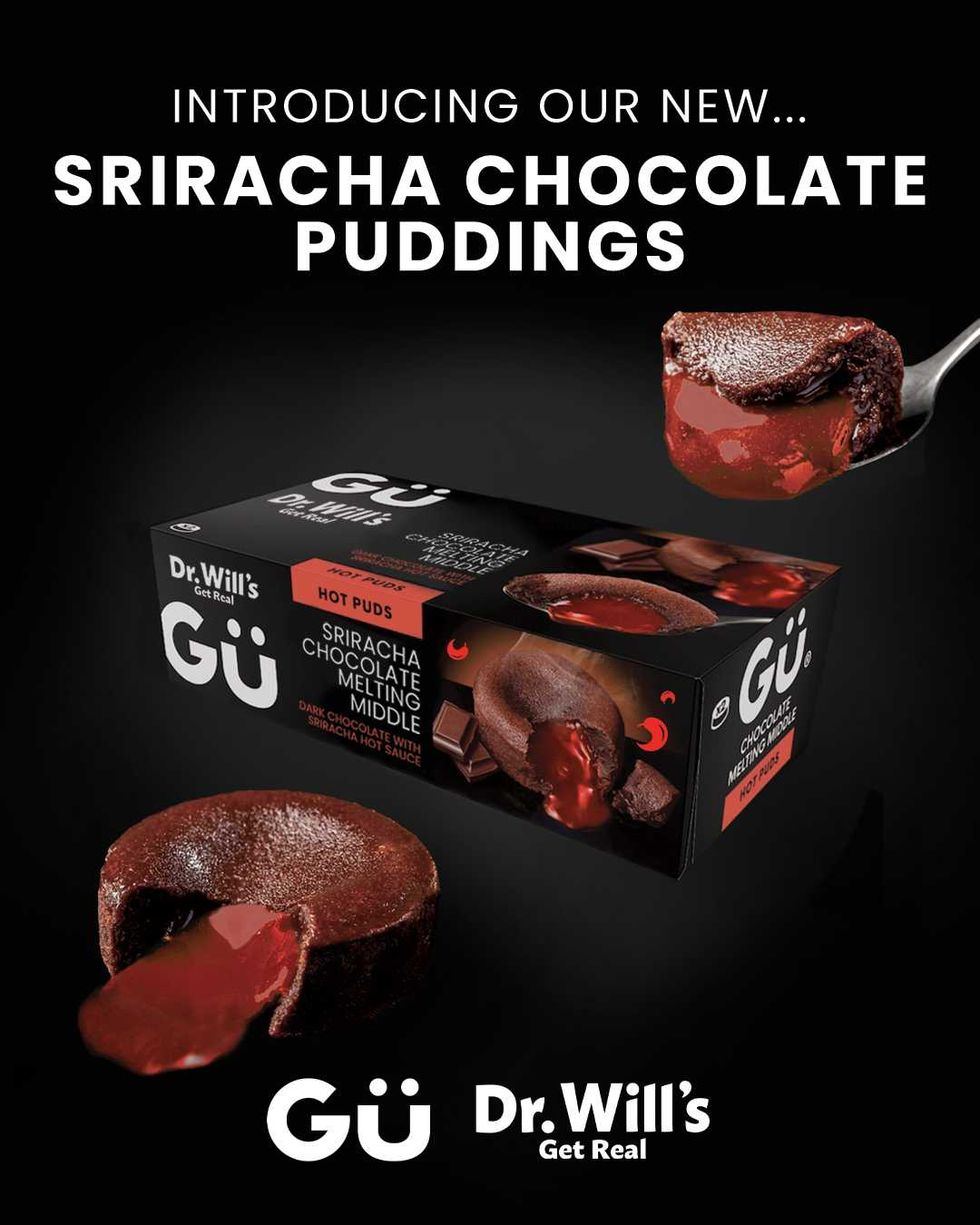 Dr Will’s and Gü have teamed up for a dessert that genuinely sounds like it could exist — until you hear the twist. The rich chocolate pudding features a molten centre made from Sriracha hot sauce instead of the usual gooey filling.