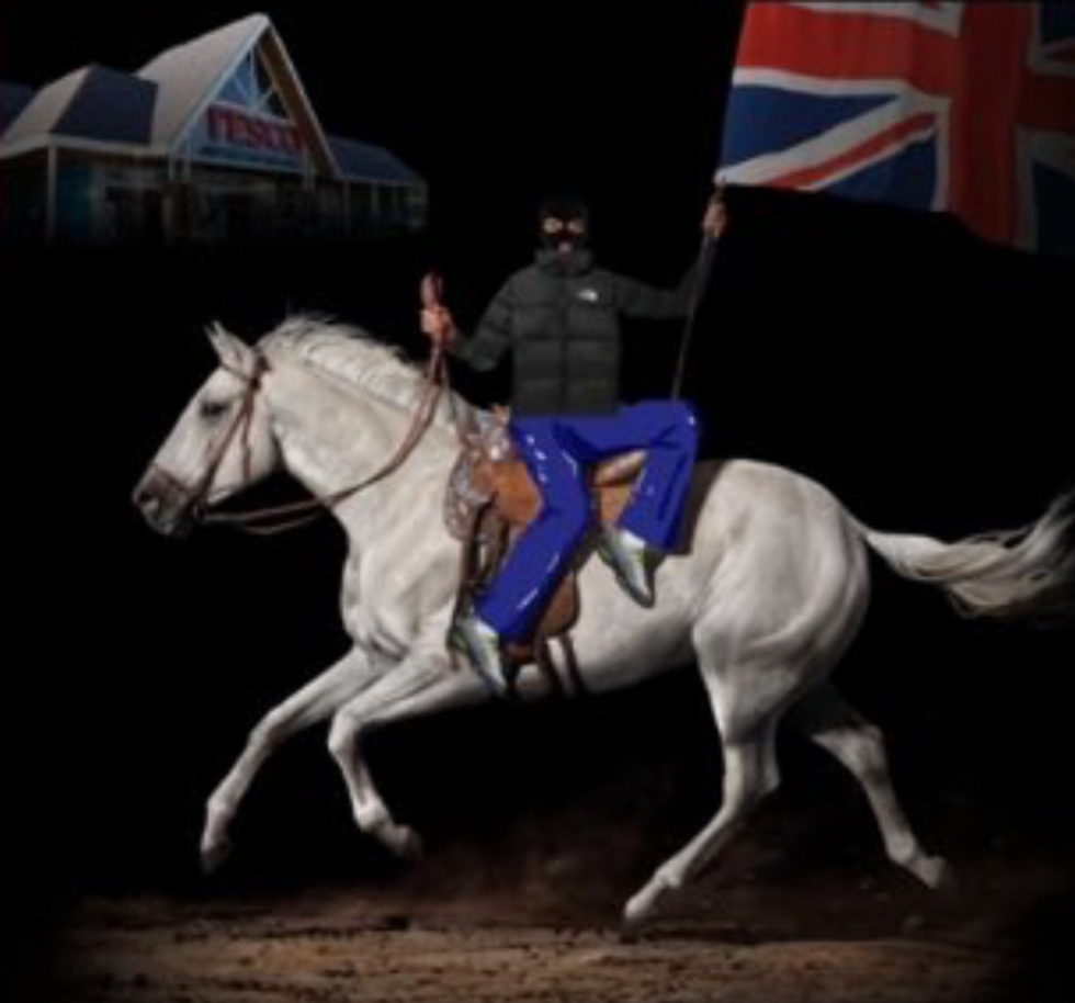 That was until he took a closer inspection at the UK, donning a balaclava, a North Face jacket with a Tesco supermarket in the background.