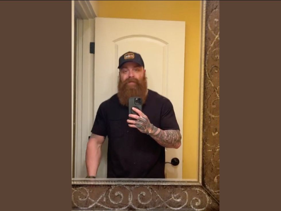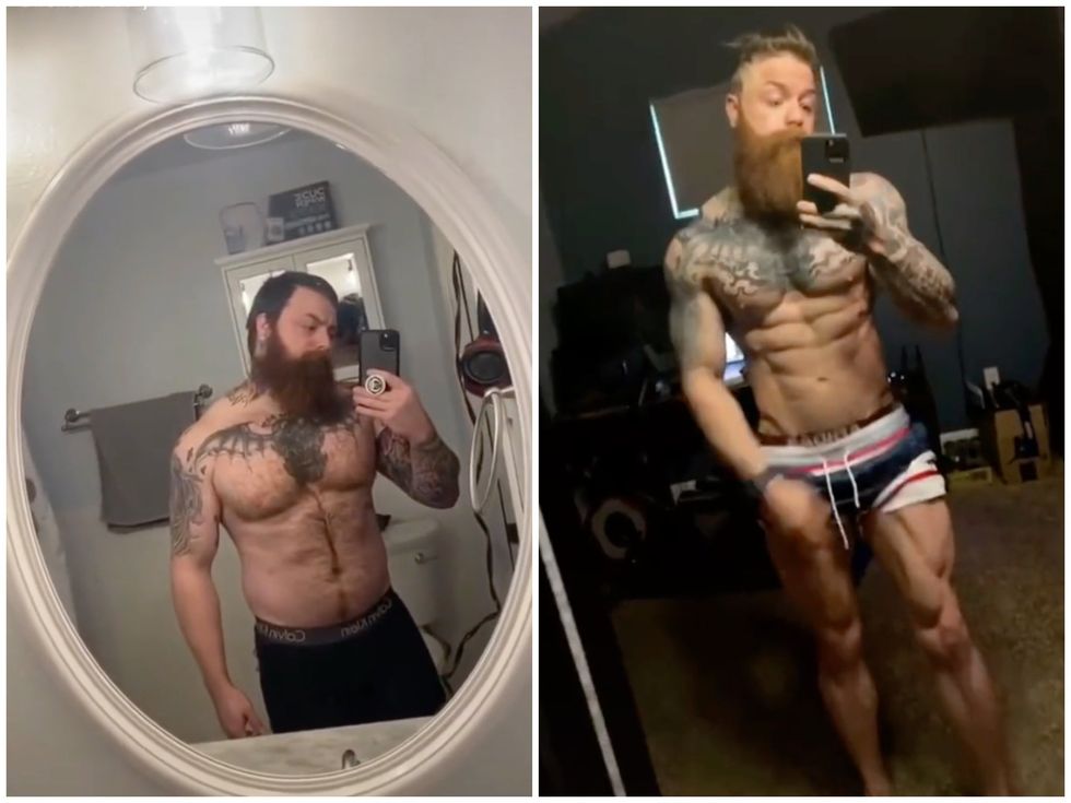 In the stitched video, Kevin Clevenger films himself looking in the mirror with a fairly regular physique before it cuts to a later shot of him looking substantially more ripped.