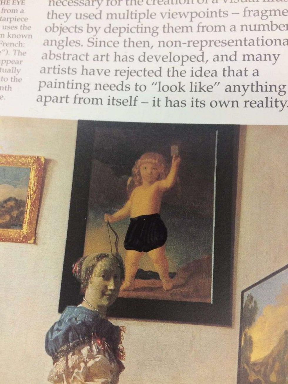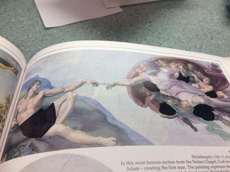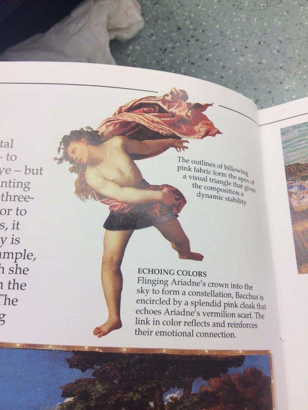 Pensacola Christian College in Florida, which offers courses in the arts, clearly has an issue with it. Well, judging by this school art textbook anyway.