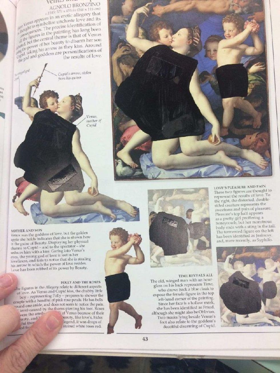 Imgur user scopecreepstudio shared some images of alterations that the college had made to bring artwork into line with its Christian teachings.