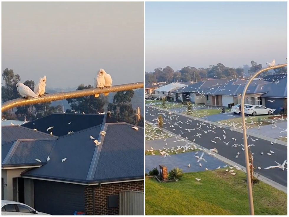Hundreds of cockatoos have filled the skies above an Australian town in scenes reminiscent of a horror film.