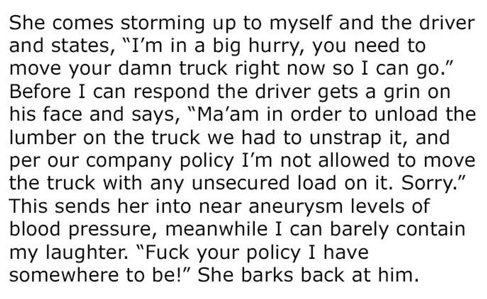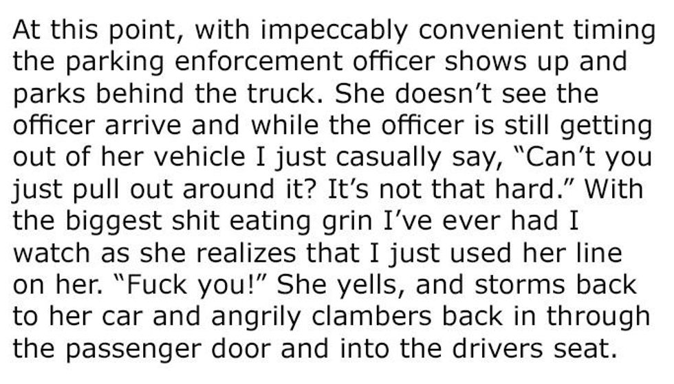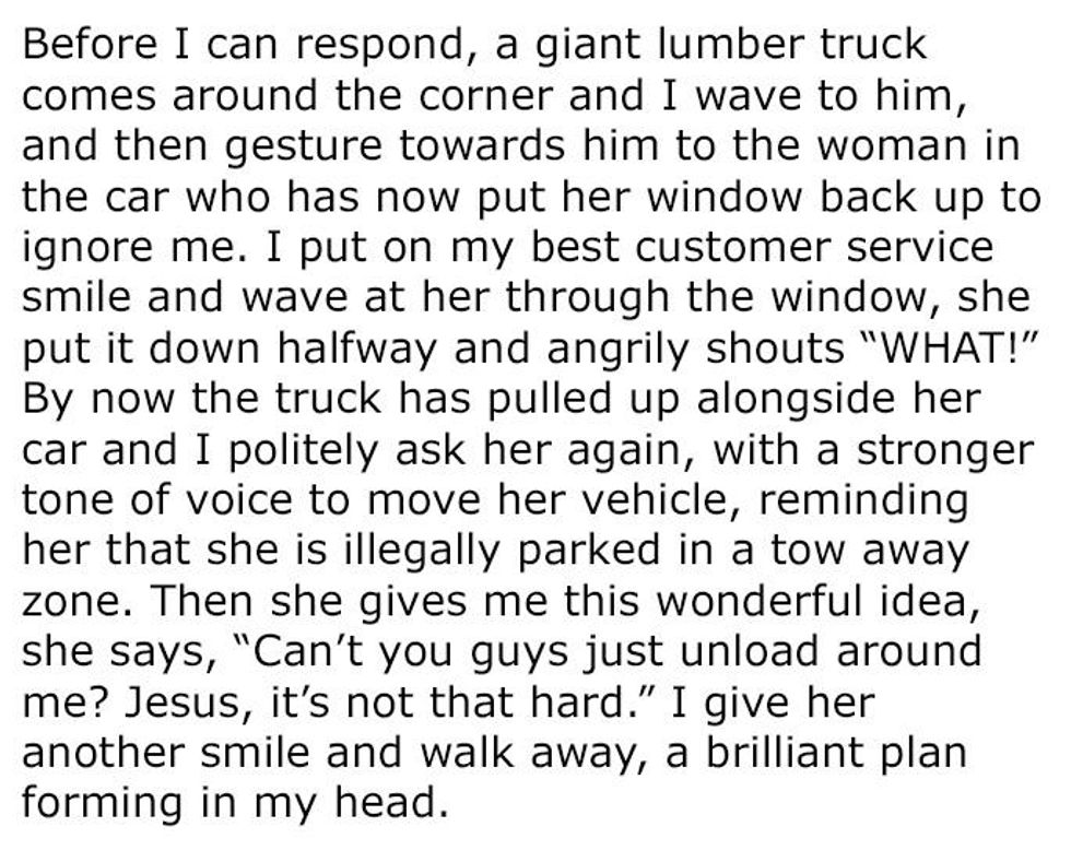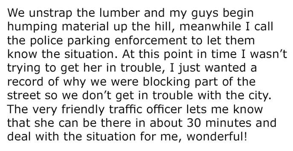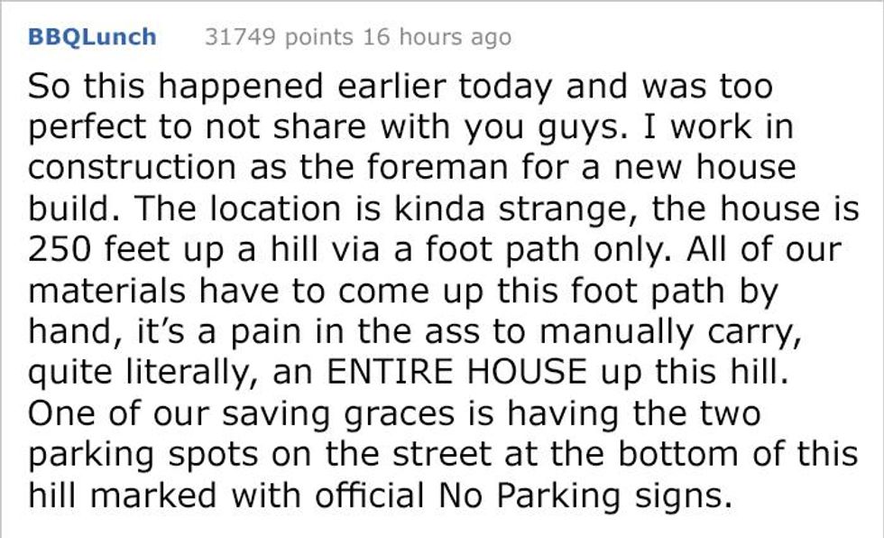 Rude, huh? Not as rude as it soon would become, when the construction worker - known as BBQLunch on Reddit, where the story was told - decided to extract some revenge.