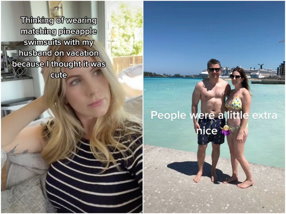 The swimming costumes were decorated with pineapples which, for many of us, might seem like just a nice beachwear design.