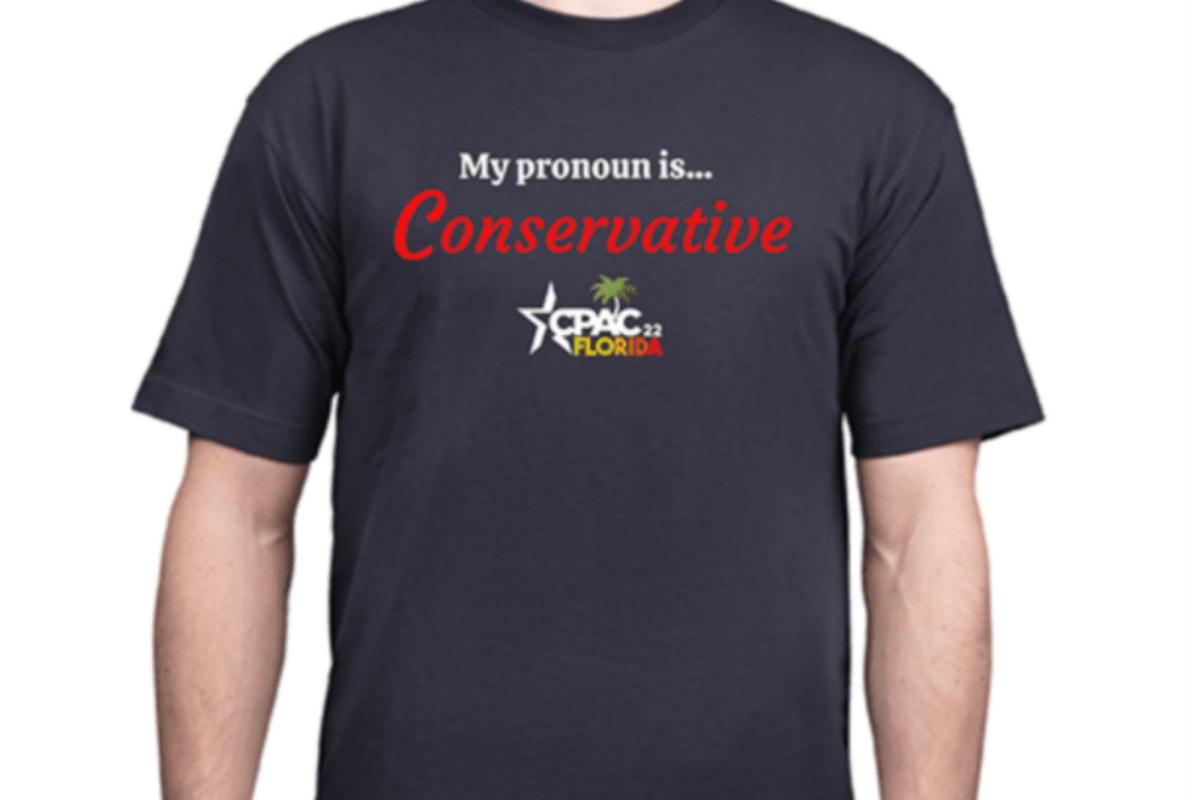5. "My pronoun is... Conservative T-shirt, $30