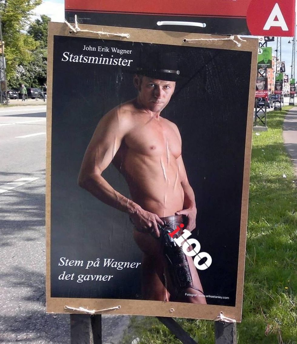 According to TheLocal.dk, the NSFW posters of the independent candidate have been erected across his native Copenhagen. While perhaps not raising the pulses of passers-by, they have certainly raised a few eyebrows.