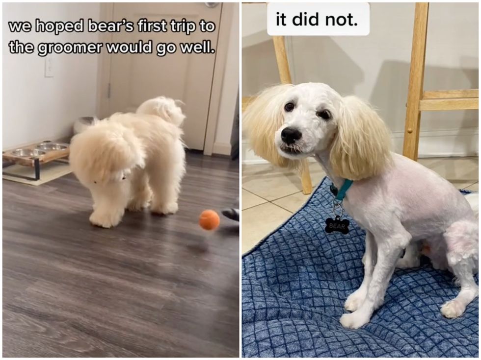 Captioning the clip, she wrote: "We hoped Bear’s first trip to the groomer would go well.