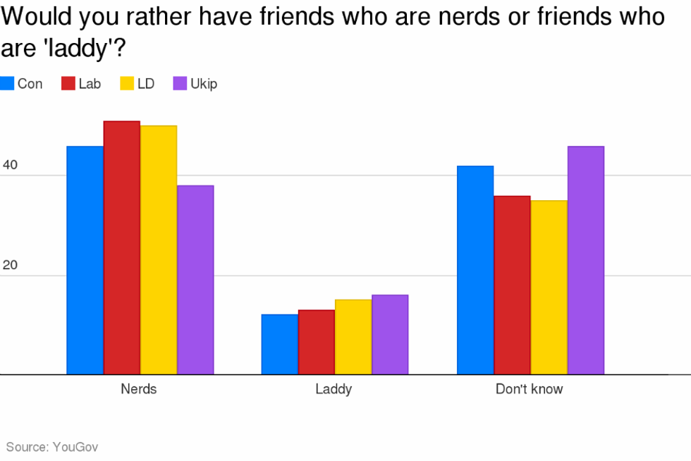 In what is likely to be this month's most important political poll, YouGov asked voters their feelings about 'nerds' and 'lads'.