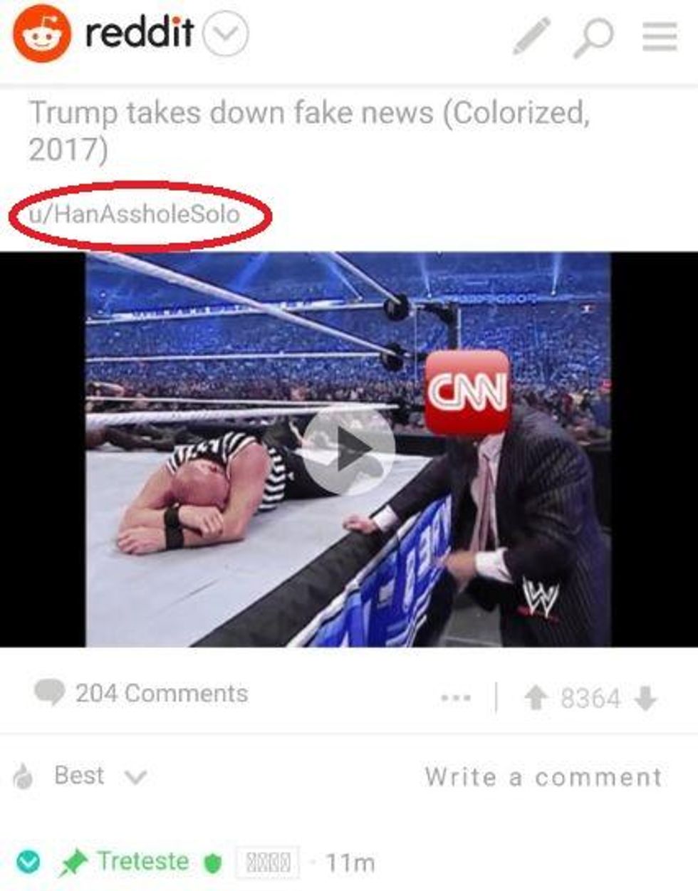 As well as memes designed to offend and provoke anger from opponents of President Trump, the same redditor has also shared what you might call ‘Fake News’.