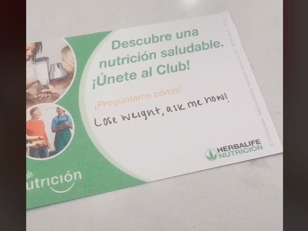 The message, which was written in a mix of Spanish and English encouraged her to “start her transformation today” by joining a nutrition club.