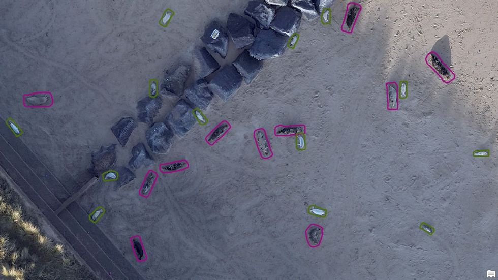 AI analysis of drone images taken in a Natural England pilot project to count seals along a stretch of the Norfolk coast (Natural England/PA)