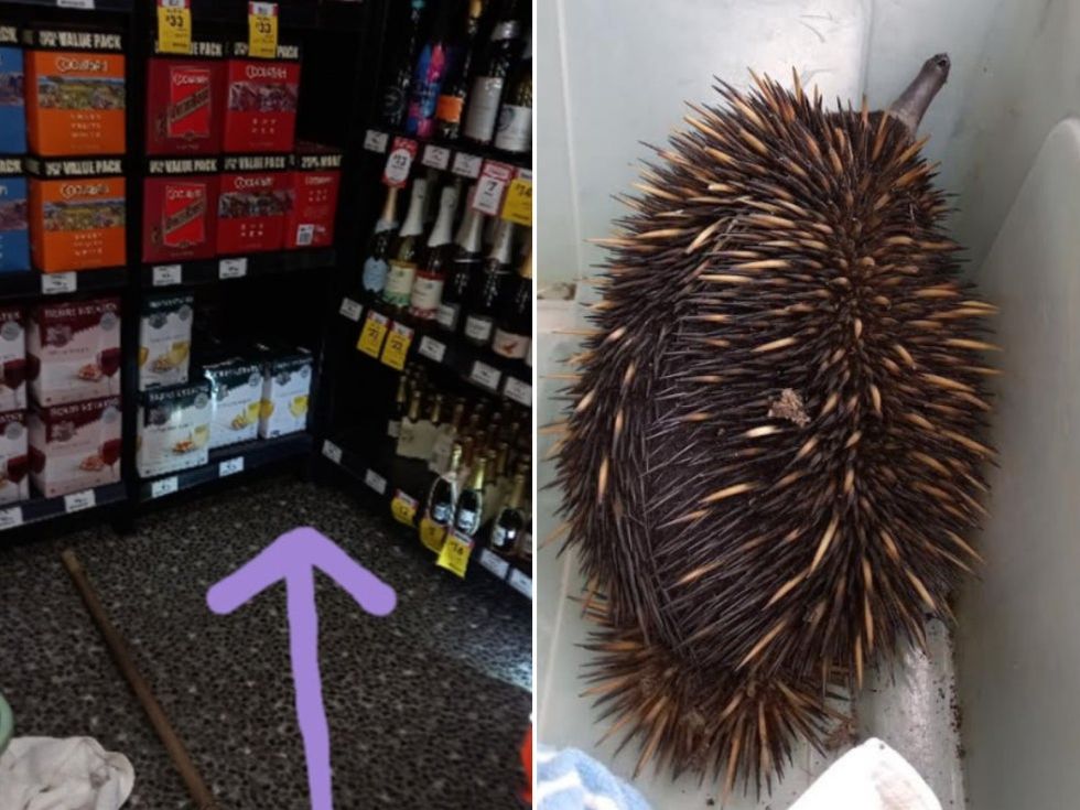 A prickly intruder caused absolute chaos when it broke into a bottle shop in Australia and raided the stock.