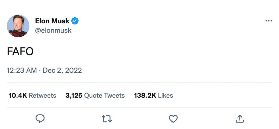 "FAFO," Musk tweeted early Friday morning following West's suspension.