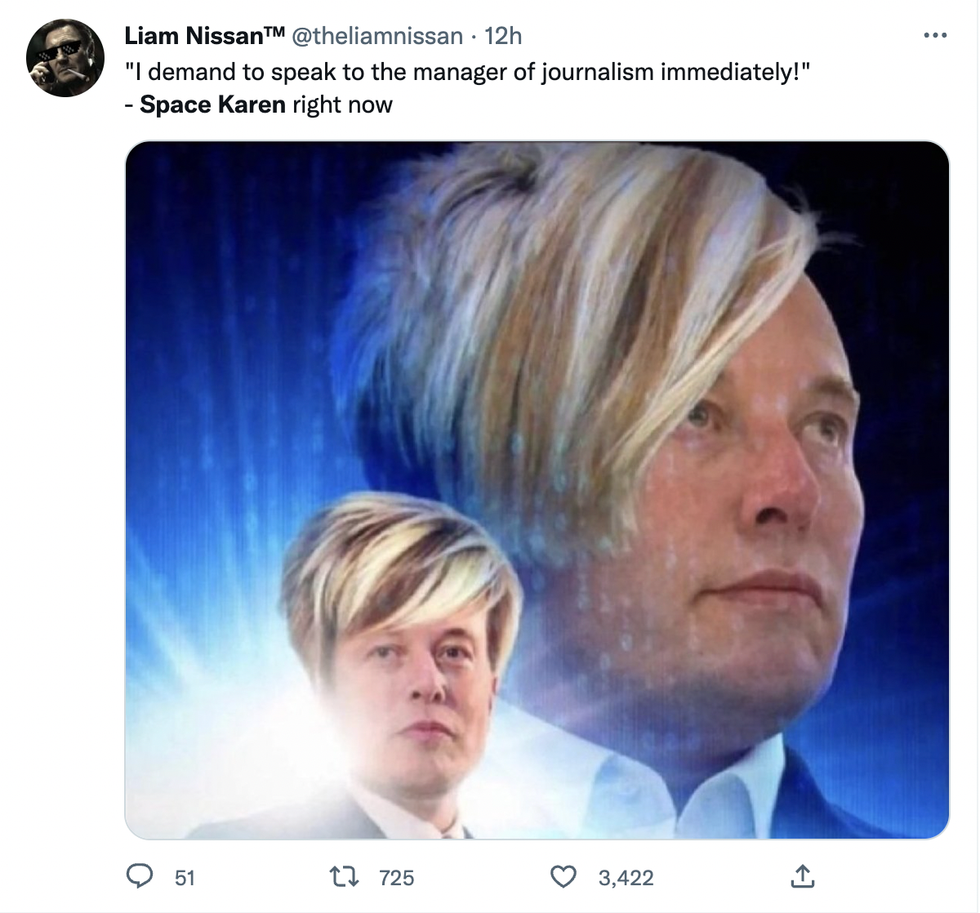 "Space Karen" is the insulting nickname people use to refer to Musk, 51.