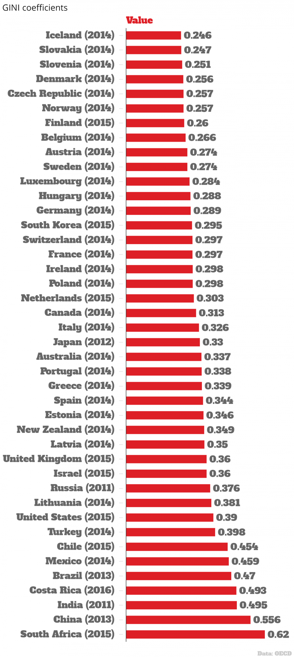 A recent post in a popular data subreddit looked at GINI co-efficients, an economic formula for gauging the income difference between the top and bottom earners in a country.