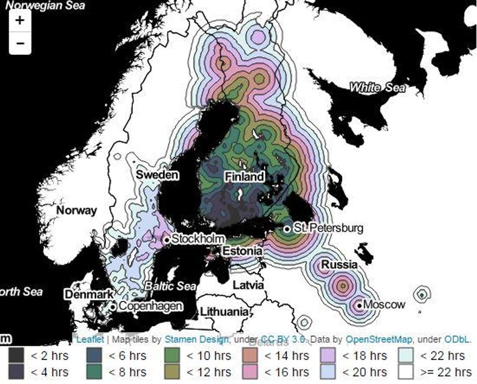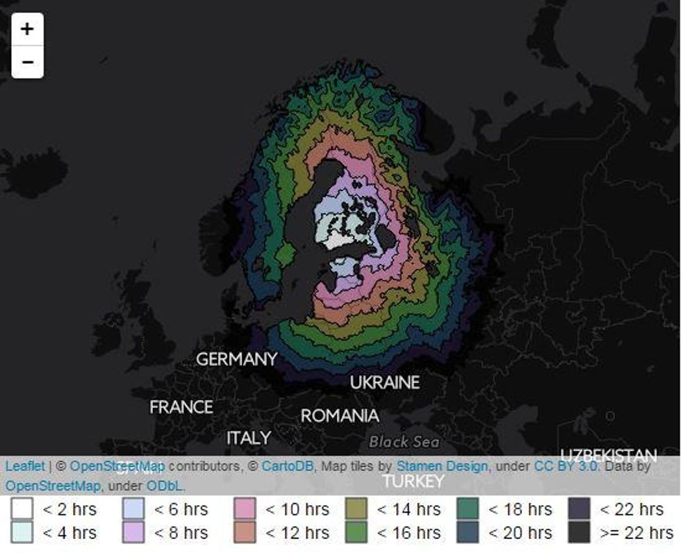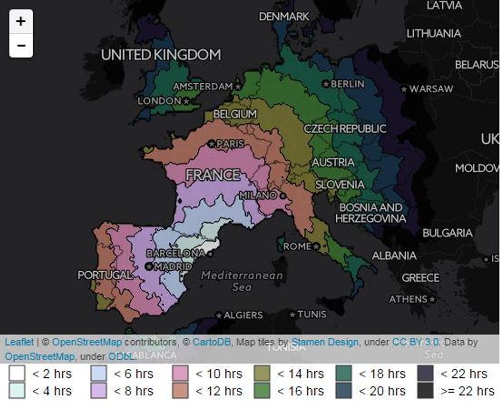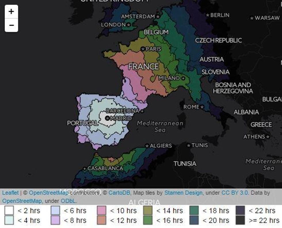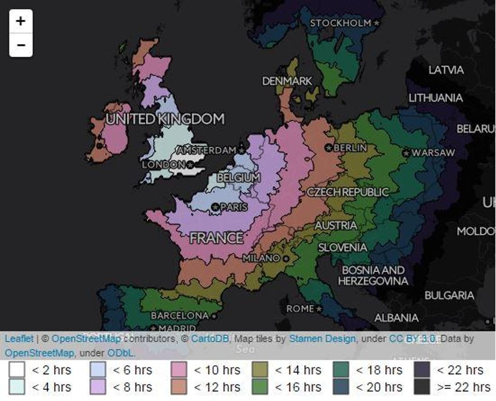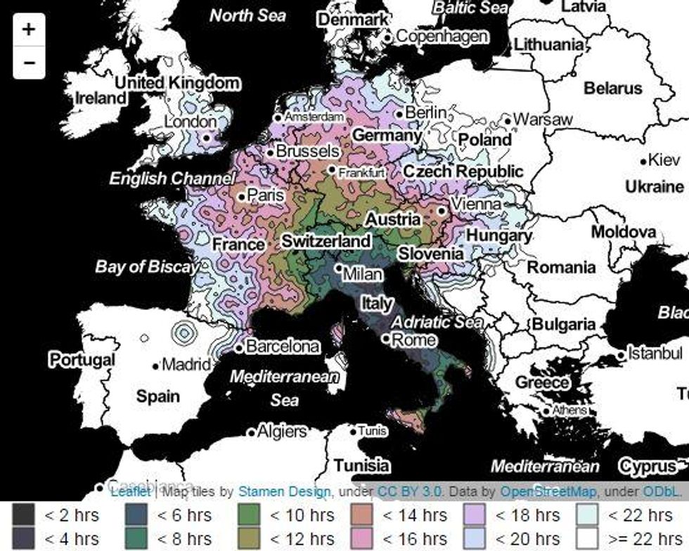He said his motivation was an isochrome map of travel from Vienna around 1881, as he wanted to update the concept for the modern day: