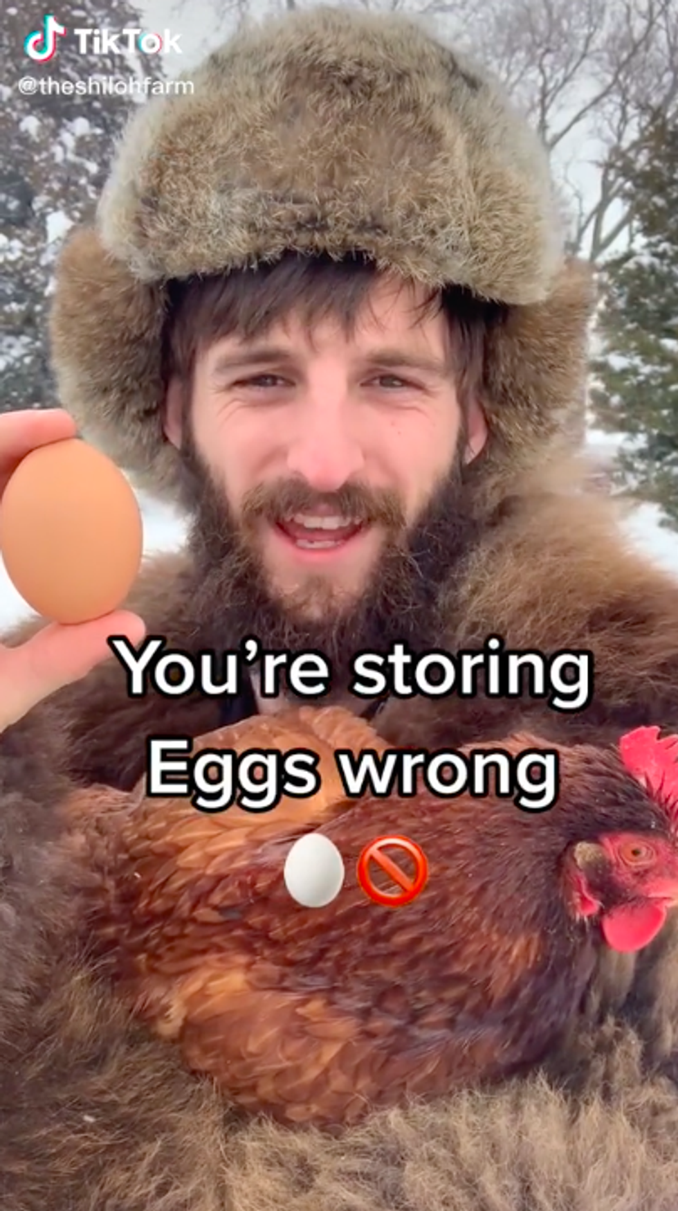 Noah Young, who owns The Shiloh Farm, has boldly claimed that the so-called pointy end that we traditionally think of as the top of the egg should actually be the bottom of the egg when standing them up inside your fridge.