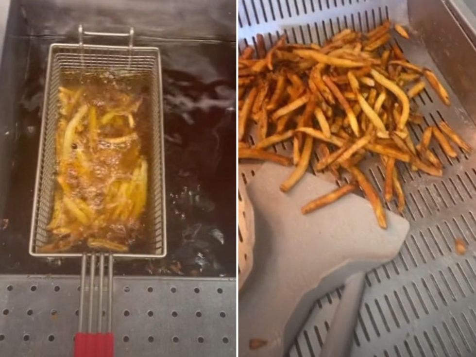 In a second TikTok, Maez shows himself grabbing “a handful” of fries to place into the fryer, where they are cooked for around two minutes to give them the crispy texture.