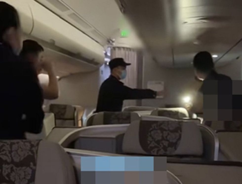 In a clip, SCMP claimed a fellow male passenger shared the airline's policy. The riled father reportedly turned on him, forcing a member of security to calm the situation.