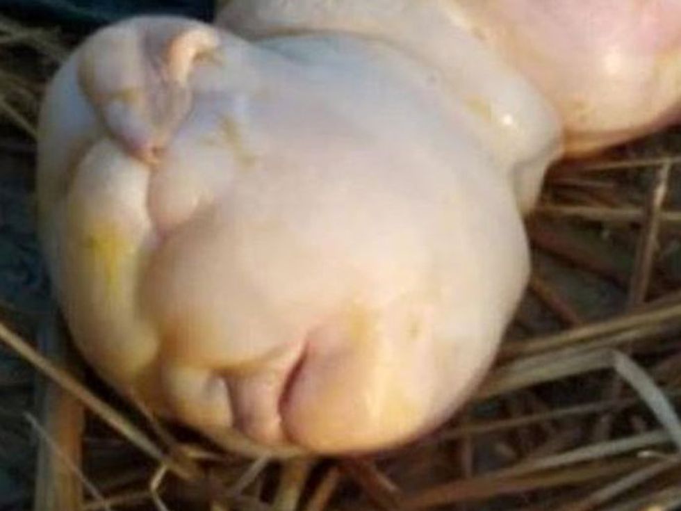 A farmer was left stunned after a goat gave birth to a deformed hairless baby with the “face of a human” – which attracted an influx of villagers desperate to get a glimpse.