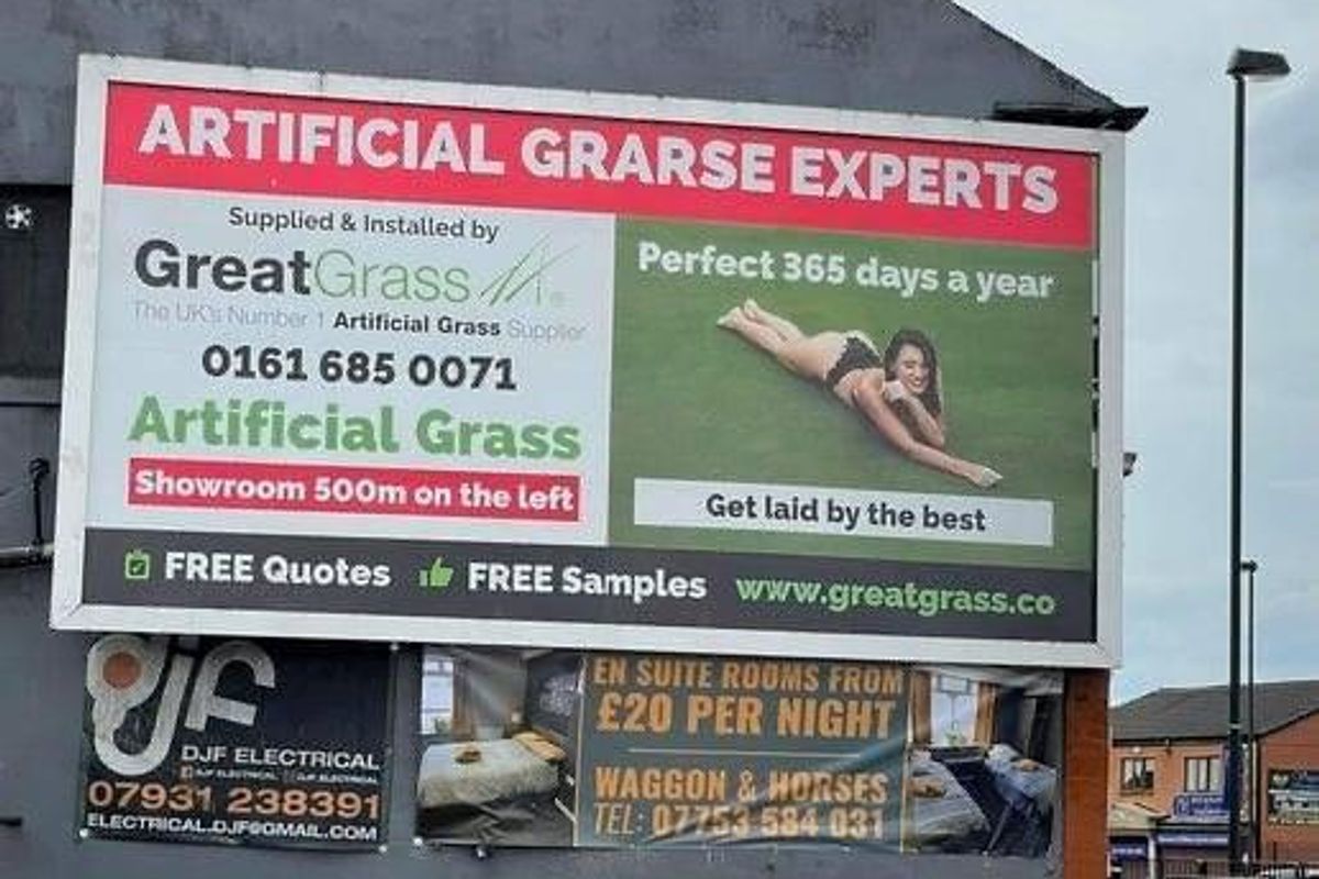 “Large text above the image stated, “ARTIFICIAL GRARSE EXPERTS”. We noted that the word ‘grass’ was spelt incorrectly to include the word “arse”.