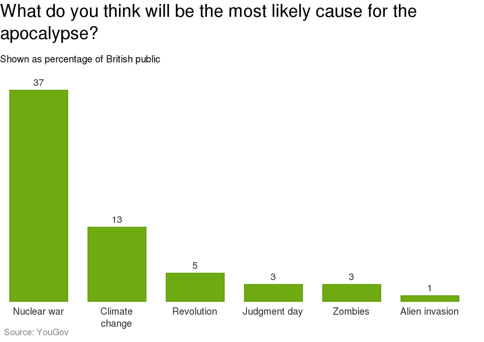 According to a new survey by YouGov, Ukip voters were found to be the most likely (31 per cent) of the main political parties' supporters to believe the end of the world will happen in their lifetime.
