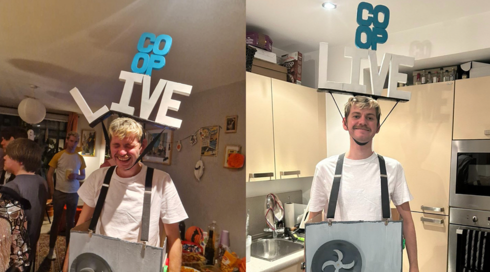 Sporting a grey box and a hat adorned with the words 'Co-op Live', which he believes made him over two metres tall, pictures of Ellis’ outfit have received more than 18,000 likes on X/Twitter.