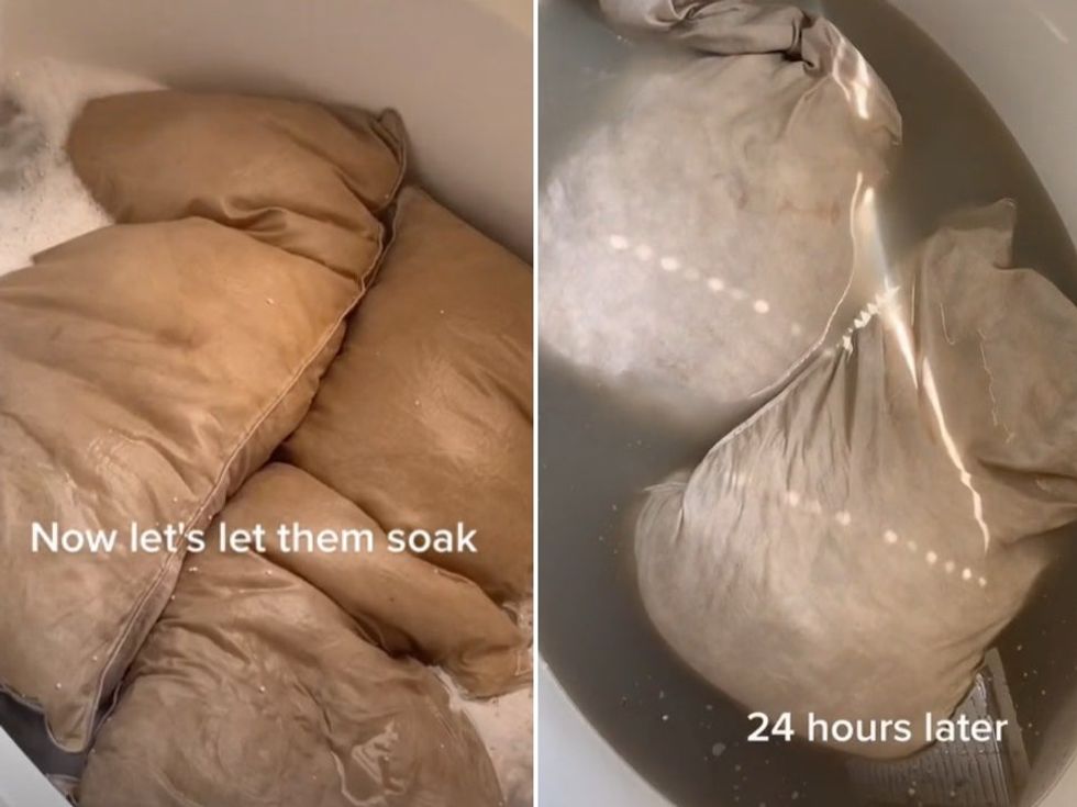A woman on TikTok washed her husband’s pillows for the first time in five years and people have compared the dirty pillows to “tea bags.”