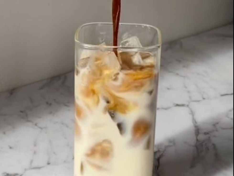The TikToker simply took a hot espresso and poured it over a good scoop of Biscoff spread. She then mixes it, pouring the espresso Biscoff liquid into a glass of ice cubes.