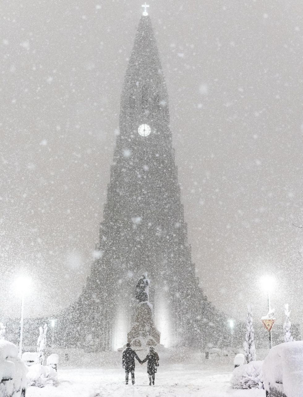 The Hallgrimskirkja church has been a particular favourite for photographers in this snowy season.