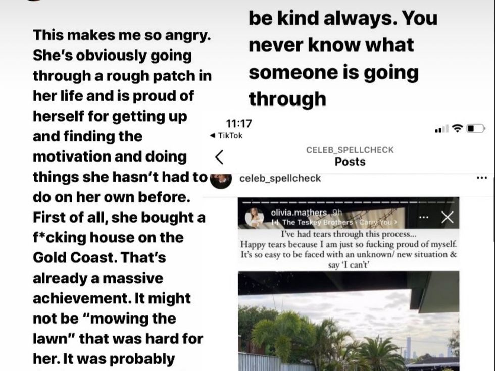 Sharing Olivia’s stories to their account, they immediately shut her sentimental statement down and said: “You mowed the lawn.”