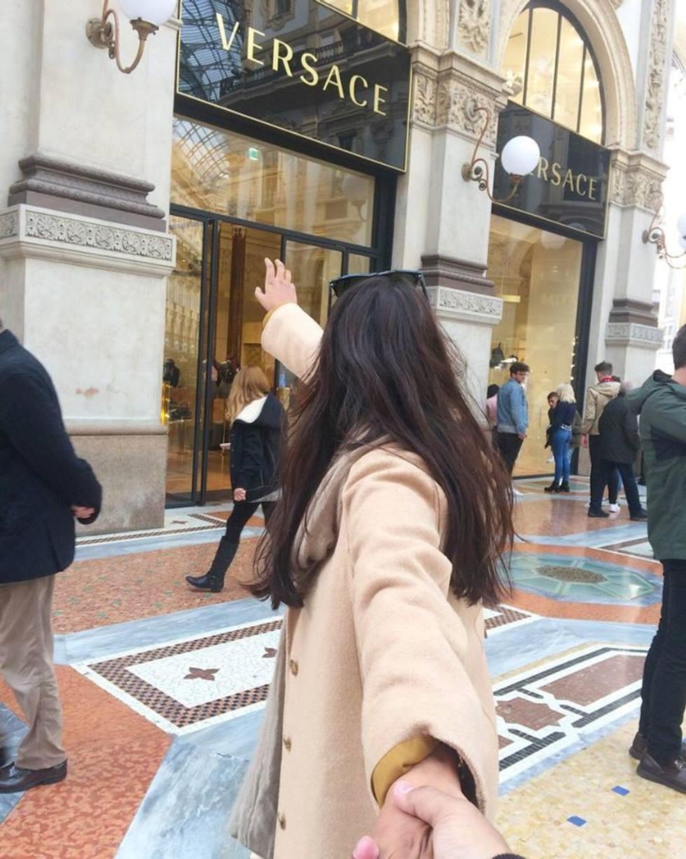 Well we had the idea to take these pictures just before we went to Italy. We picked luxury brands we knew we could never afford like Hermes and Louis Vuitton. We also happened to be in Milan where there are luxury brands a plenty. We especially liked the Galleria Vittorio Emanuele because it was so beautiful and we thought taking pictures there would be good.