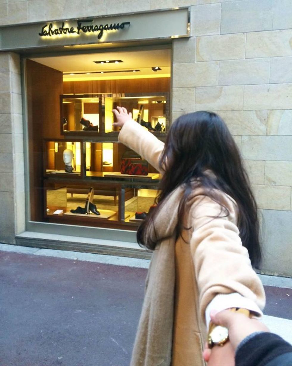 They decided to pose in front of luxury brands to commemorate all the fruits of capitalism they could not afford.